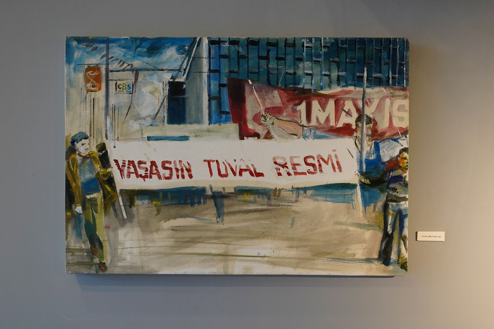 Burhan Kum, who started executing art with the copies of drawings he made by looking at the Alphabet book of his two years older brother, has been producing art "consciously" since 1989, the year he graduated from the academy. He has been exhibiting his works uninterruptedly since 1992. Kum decided to start the retrospective with the Manavgat Postcards series, exhibited in 2002 (and he was sued for) which he sees, as the first the first moves to create his own narrative language. These paintings are the first critical attitude that Kum developed against the social perception that the dominating power is trying to construct through images. The Postcards series is also the beacon of the issue of “the social meaning of images and their function in historiography”, which will be the main sentence of all his subsequent exhibitions.